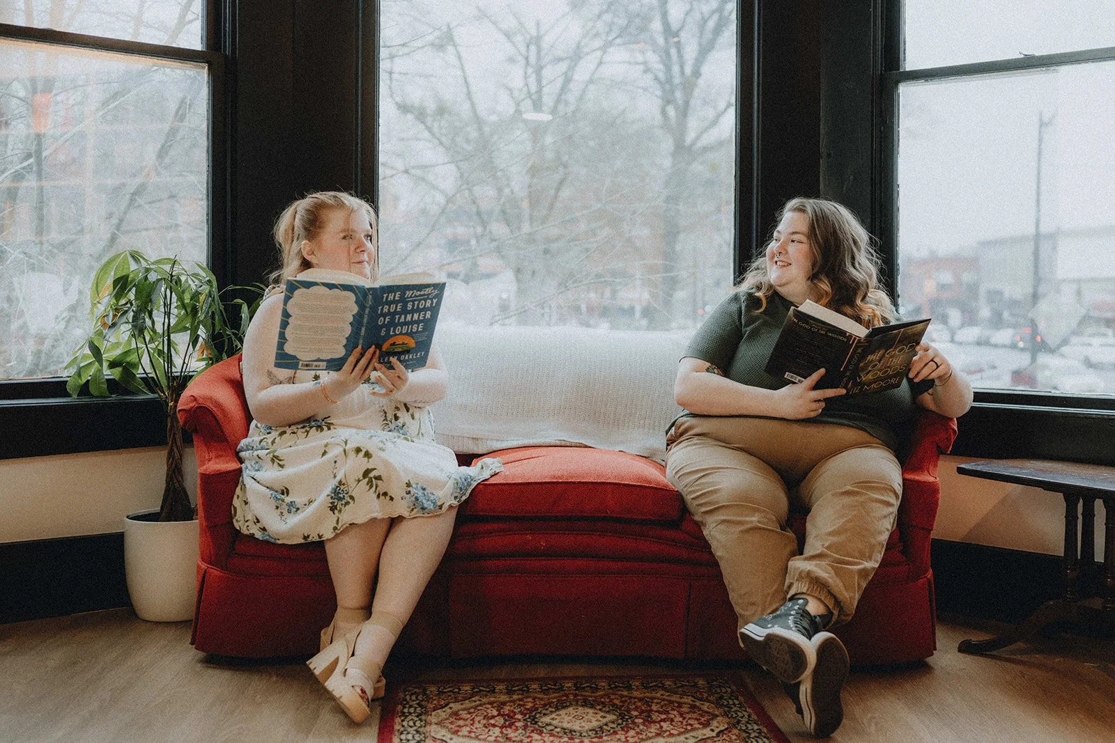 So when I started talking with Lexi and Haleigh about locations for their engagement session, I was initially stumped. I was new to the area and while I do know of some incredible spots for all the other times of year, finding a place for a winter session that was going to be fun and speak to these two as a couple was challenging. Then one day, I was walking around downtown Marietta and saw this bookstore, The Reading Attic. I walked inside, immediately shielded from the cold winter air and enveloped by the warmth of the store’s heating. Once I was in the main part of the bookstore, my little photographer brain was exploding in all the best ways…it was ADORABLE! Not only did I want to spend the rest of my day there with a cup of coffee, I immediately knew it would be perfect for a session. I texted Haleigh and Lexi and asked if they were readers and when they replied and said they were, I suggested this spot for their session. And so this amazing photoshoot was born!